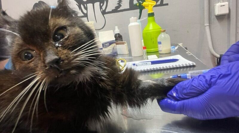 Евакуйована з фронтової зони кішка потребує термінового лікування