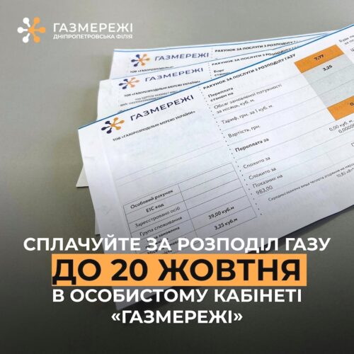 Дніпропетровська філія «Газмережі» нагадує: Встигніть сплатити за розподіл газу до 20 жовтня