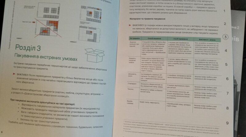 Видання розроблене за підтримки ЮНЕСКО й містить практичні поради для музейних працівників. У ньому детально описані алгоритми дій у кризових обставинах: організація евакуації музейних закладів у разі загрози, порядок документування втрат колекцій та пам’яток, збереження експонатів під час надзвичайних ситуацій.