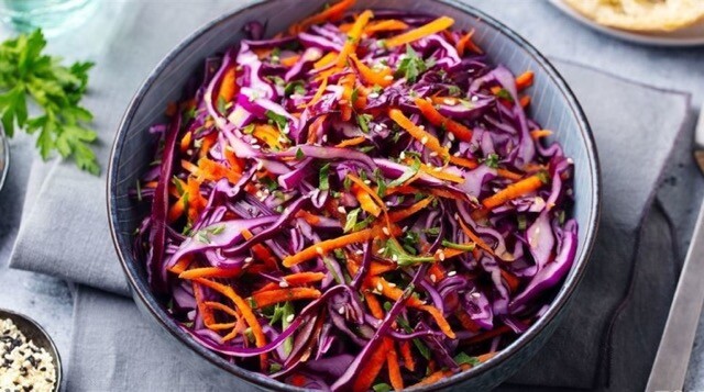 Червонокачанна капуста дуже корисна – вона містить багато вітаміну C, антоціанів та клітковини, які зміцнюють імунітет та покращують травлення.