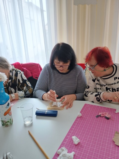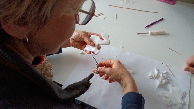 «На пласт глини кладемо ескіз, вирізаємо та окремо формуємо мордочку, вушка, лапки. Після варіння можна додавати фарби. Усі учасниці в захваті, їм подобається. А мені імпонує атмосфера, що панує тут: сміх, жарти й майстерність у руках жінок», — розповідає Антоніна.
