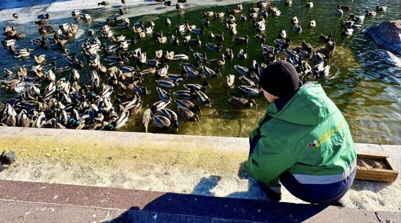У холодні зимові дні в Дніпрі особливої уваги потребують не лише люди, а й дикі тварини. У Дніпро працівники парк Глоби підгодовують водоплаваючих птахів, аби допомогти їм пережити морози та зберегти популяцію пернатих мешканців міського парку.