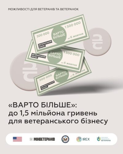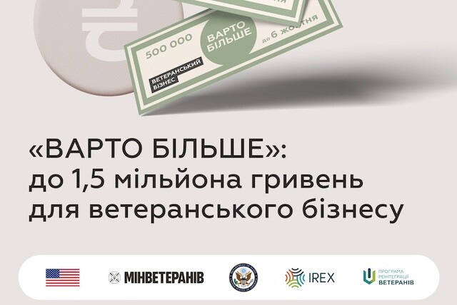 Український ветеранський фонд (УВФ) запустив нову грантову програму «ВАРТО БІЛЬШЕ», метою якої є фінансова підтримка ветеранів, ветеранок та їхніх родин для започаткування або масштабування власної справи.
